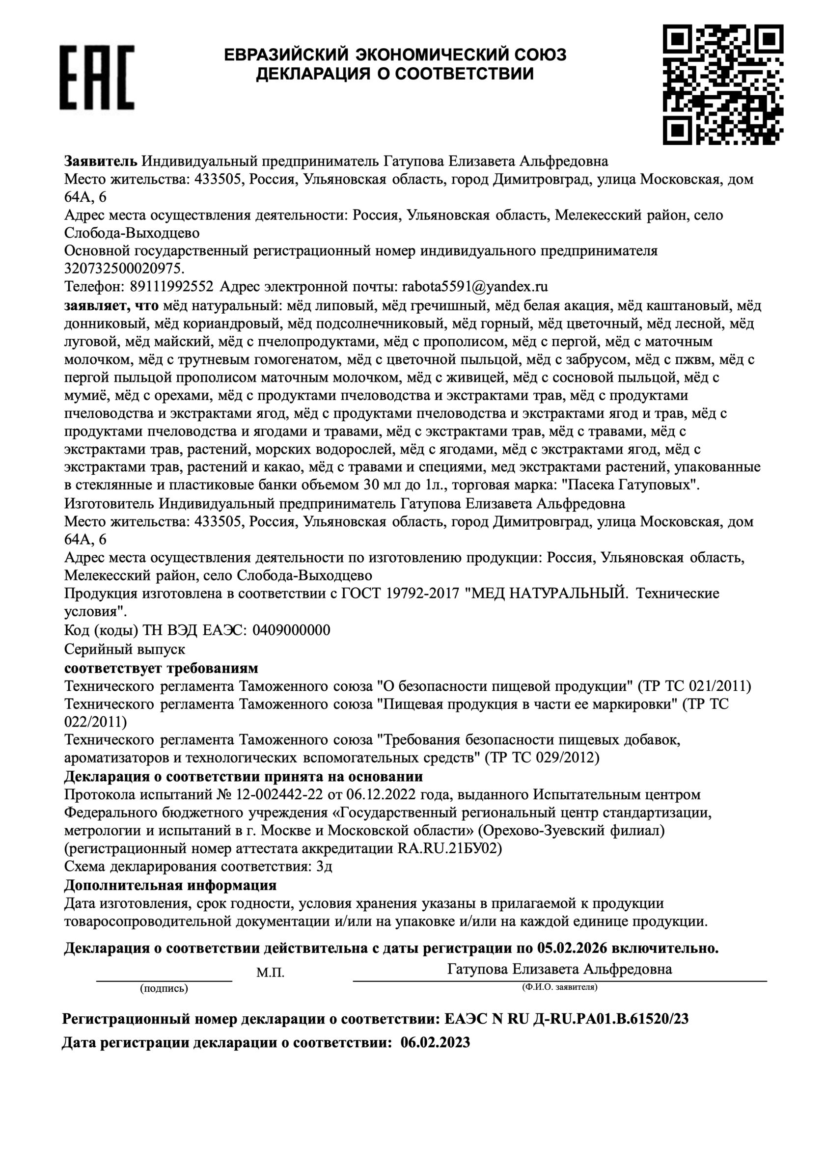 Для продажи мёда необходим сертификат ветеринарного соответствия и ветеринарный сертификат пасеки. Он выдаётся не на образец мёда, а на всю партию. Показывает отсутствие патоки, сахара, пади / влажность / диастазное число и т.д.